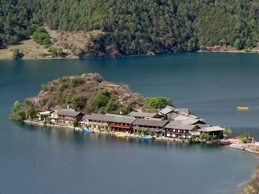里格島是瀘沽湖內(nèi)一個(gè)美麗的半島,海島三面環(huán)水,左右青山環(huán)抱,傍立格姆女神山。李仁奇 攝