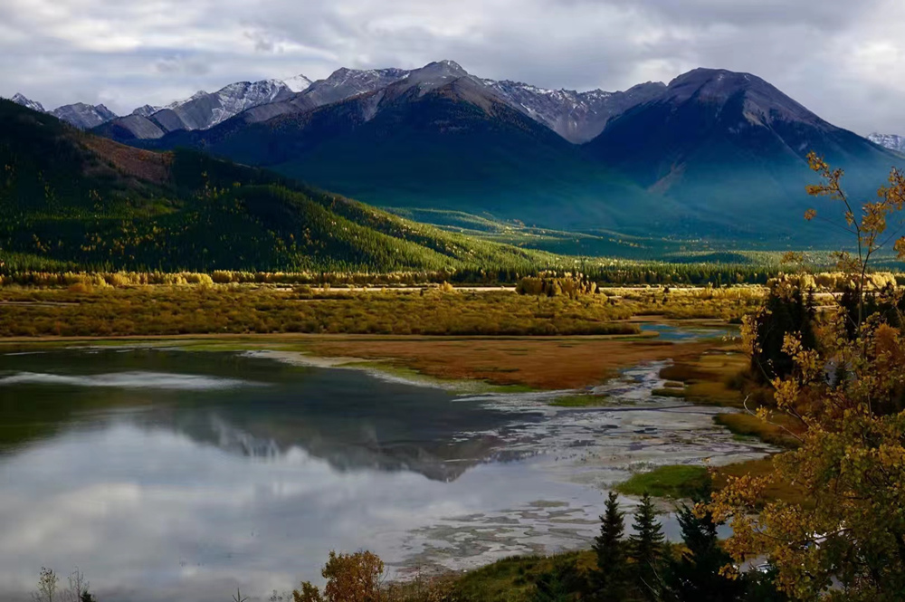 秋季是班夫最美的季節(jié),像九寨溝一樣,在藍色湖泊、綠色叢林之外,又多出了紅色和黃色的樹葉,映襯在白色的雪山之中,呈現(xiàn)出一個五彩繽紛的世界。李仁奇 攝