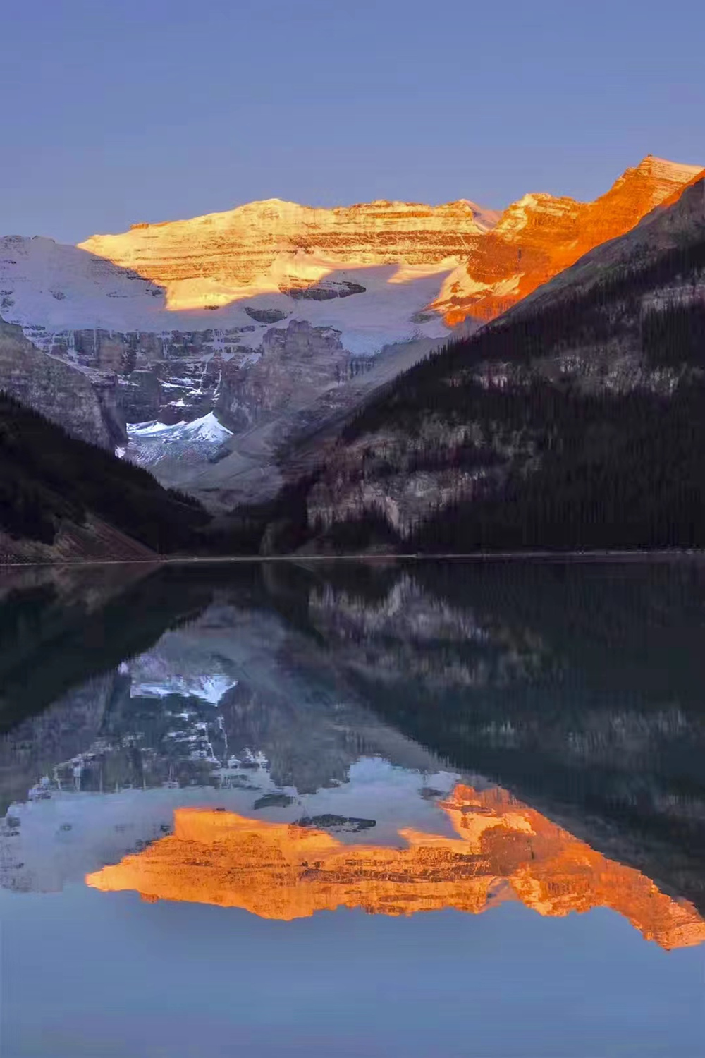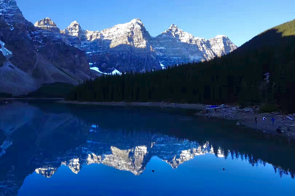 湖水晶瑩剔透,在鋸齒狀的山谷的擁環(huán)下,就像一塊寶玉。這塊“國寶”被印在加拿大20元的紙幣上。李仁奇 攝