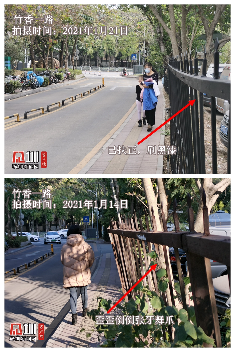 見圳客戶端·深圳新聞網2021年1月21日訊(記者 陳致遠)窄窄的人行道,搖搖欲墜張牙舞爪的圍欄——第16期深網記“路”儀報道的竹香一路,有了最新進展。此前因找不到代建單位而無法移交主管部門管養(yǎng)的這條路,在記者報道后不到一周的時間,歪歪倒倒的圍欄扶正了,人行道也即將拓寬。