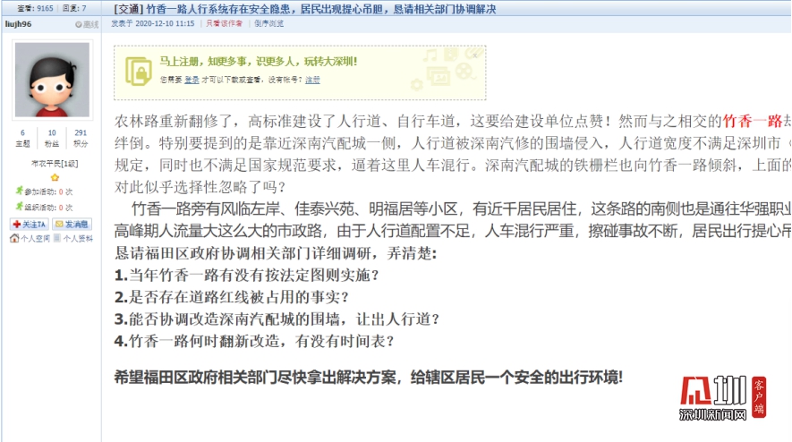 網(wǎng)友“l(fā)iujh96”2020年12月10日在深圳論壇發(fā)帖。