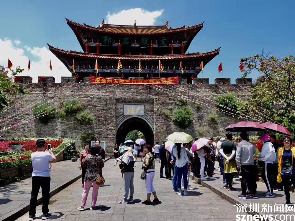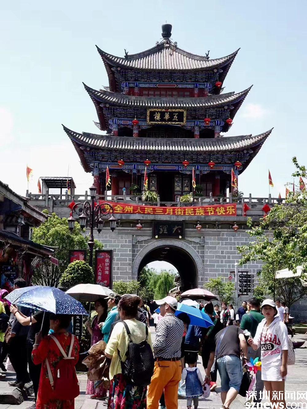 上世紀八十年代以后,大理陸續(xù)在遺留下來的300多米古城墻上重修了四座城門樓和城中心的“五華樓”,重現(xiàn)了古都風(fēng)采,引來無數(shù)游客。李仁奇 攝