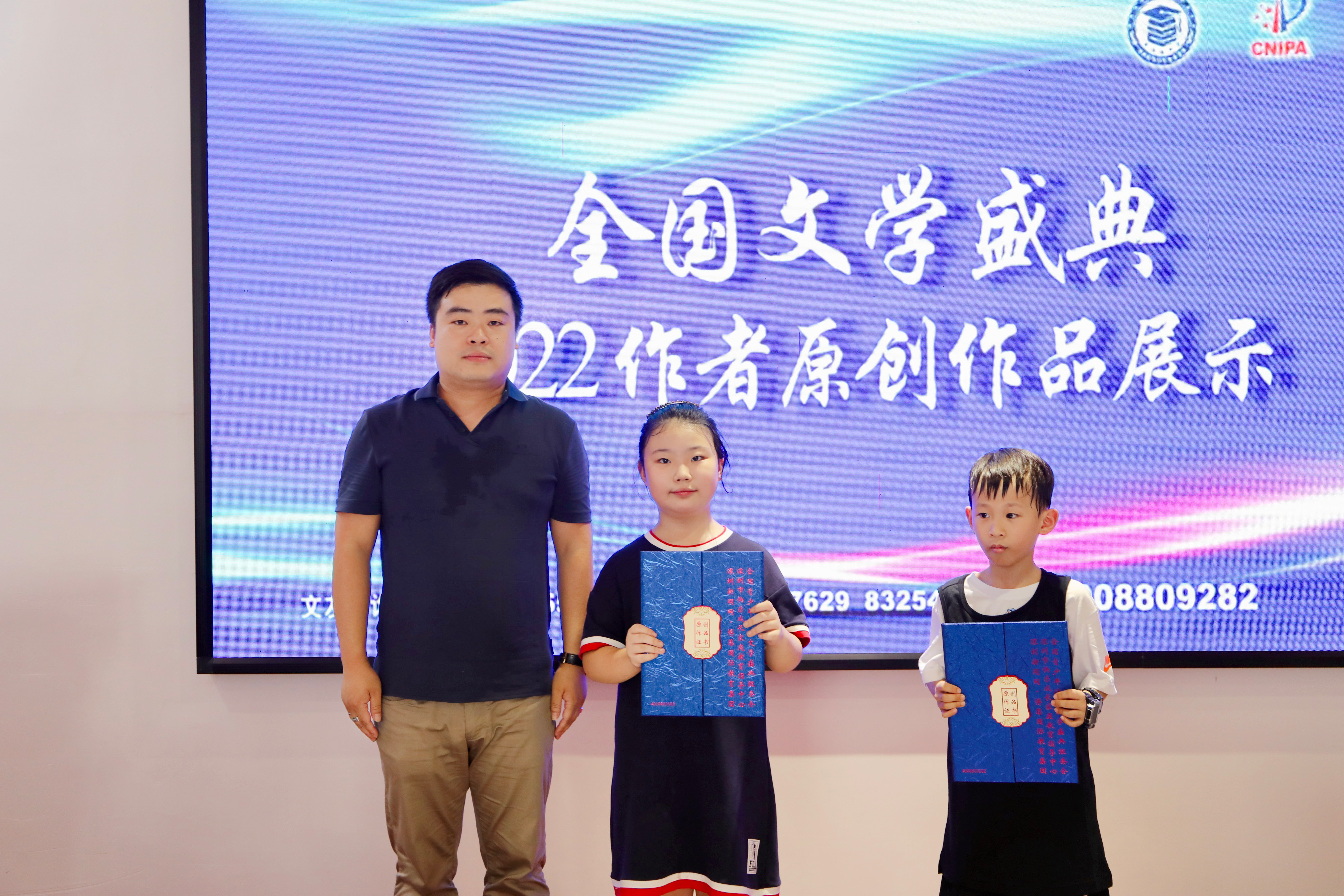 獲得原創(chuàng)作品證書(shū)和入選原創(chuàng)作品個(gè)人專(zhuān)輯的作者代表們與頒獎(jiǎng)嘉賓合影