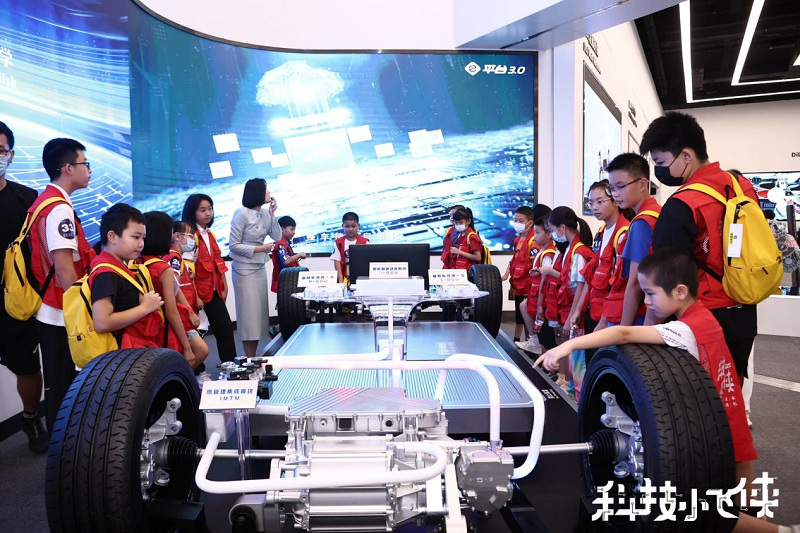云軌體驗(yàn)結(jié)束后,“科技小飛俠”來到比亞迪博物館,探知汽車世界。博物館里詳細(xì)記錄了比亞迪汽車的發(fā)展歷程、科技創(chuàng)新、榮譽(yù)資質(zhì)等內(nèi)容,看著陌生的世界,小飛俠們走走看看,不時(shí)也會提出“汽車只能加油嗎?”“新能源汽車如何運(yùn)作?”等問題,在講解員及比亞迪工作人員的耐心解答下,小飛俠們深入了解了汽車的有關(guān)知識,打開了通往汽車世界的大門。