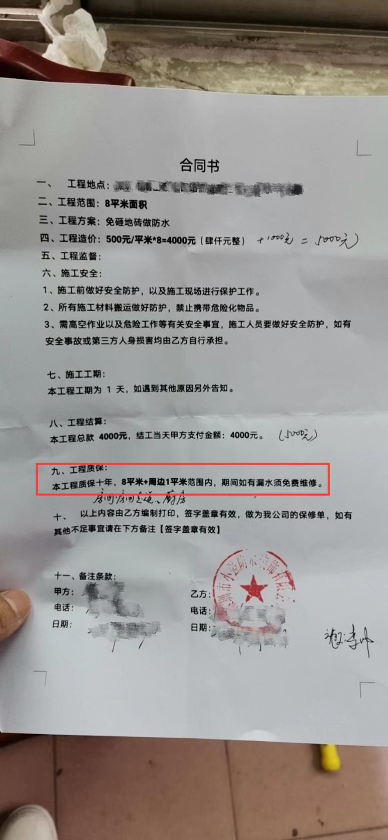 本人于2022年3月29日與該商家簽訂施工合同,支付4000元做防水工程并于當(dāng)天施工,到了雨季發(fā)現(xiàn)施工處依然漏水,聯(lián)系商家上門維修了1次,但之后發(fā)現(xiàn)施工處仍然漏水,多次聯(lián)系商家無回復(fù)。合同中約定工程質(zhì)保10年,現(xiàn)要求商家按照合同約定免費(fèi)提供維修服務(wù)。