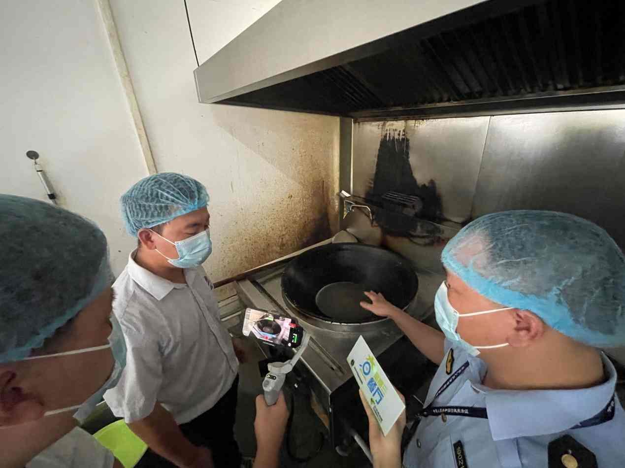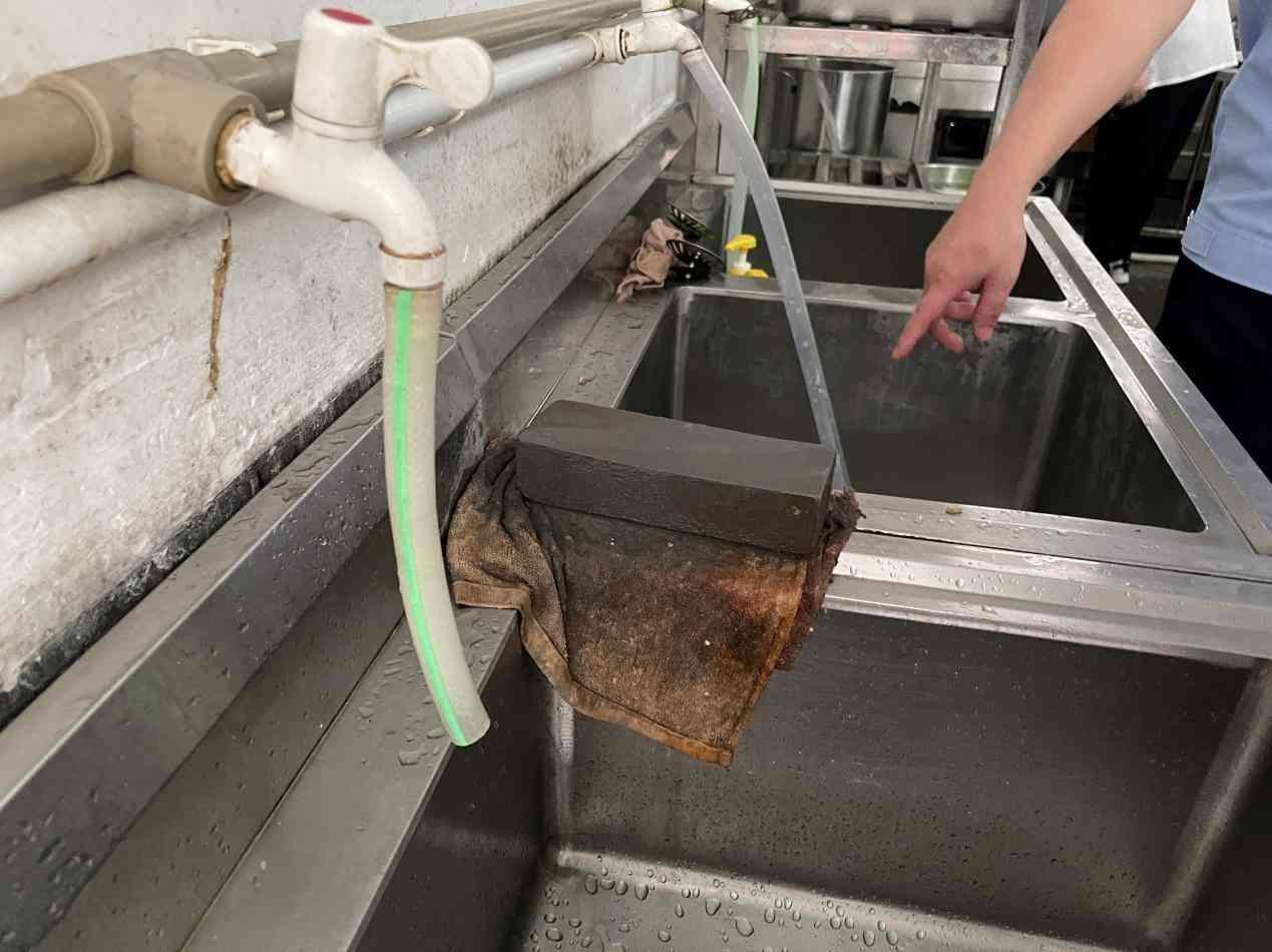 但在檢查中,執(zhí)法人員也發(fā)現(xiàn)了不少的問題。在粗加工區(qū),執(zhí)法人員發(fā)現(xiàn)蔬菜清洗池旁邊有一塊潔凈程度較差的磨刀石,要求食堂負(fù)責(zé)人將其清潔后移放別處,以防止對食材產(chǎn)生污染。進(jìn)入烹飪區(qū),執(zhí)法人員對食堂員工進(jìn)行了手部檢查,發(fā)現(xiàn)員工指甲偏長,要求盡快剪除。同時,執(zhí)法人員發(fā)現(xiàn)烹飪區(qū)缺少燈具,光線較為昏暗,若鍋中有異物難以發(fā)現(xiàn),建議食堂負(fù)責(zé)人盡快安裝燈具。而在烹飪區(qū)的地面,執(zhí)法人員在排水渠盡頭發(fā)現(xiàn)了一個未加遮掩的大洞,執(zhí)法人員表示,這樣的大洞極容易造成老鼠、蟑螂等生物的入侵,要求食堂負(fù)責(zé)人盡快對此問題進(jìn)行整改。