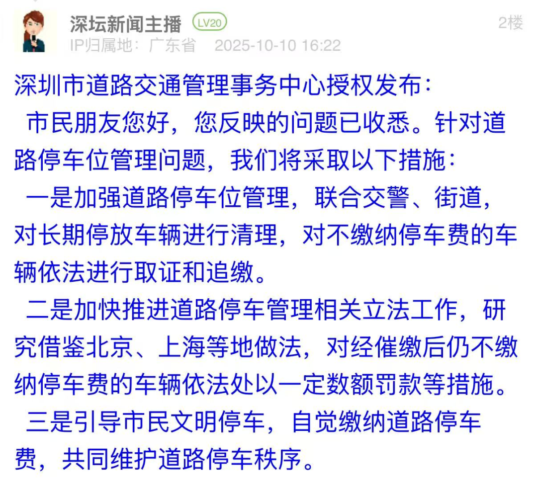 優(yōu)化建議:市民在帖文中反映,其此前的投訴件被標(biāo)記為“辦結(jié)”,但霸位車輛依舊未被移走,現(xiàn)場(chǎng)問(wèn)題未解決,質(zhì)疑相關(guān)部門(mén)執(zhí)行力不足。對(duì)于市民的再次投訴,深圳市道路交通管理事務(wù)中心的回應(yīng)存在公式化、未切實(shí)回應(yīng)市民核心關(guān)切的問(wèn)題,僅以“加強(qiáng)管理”“推進(jìn)立法”“引導(dǎo)文明停車”等回復(fù),難以消除公眾對(duì)治理執(zhí)行力的疑慮。建議后續(xù)強(qiáng)化回應(yīng)針對(duì)性,具體問(wèn)題具體答復(fù),如公開(kāi)執(zhí)法流程、提供處置證據(jù)等,以務(wù)實(shí)態(tài)度回應(yīng)市民監(jiān)督,提升治理公信力。