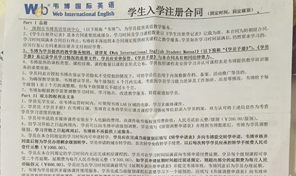 網(wǎng)友在深圳韋博英語(yǔ)上6節(jié)課花費(fèi)34800元 退款難