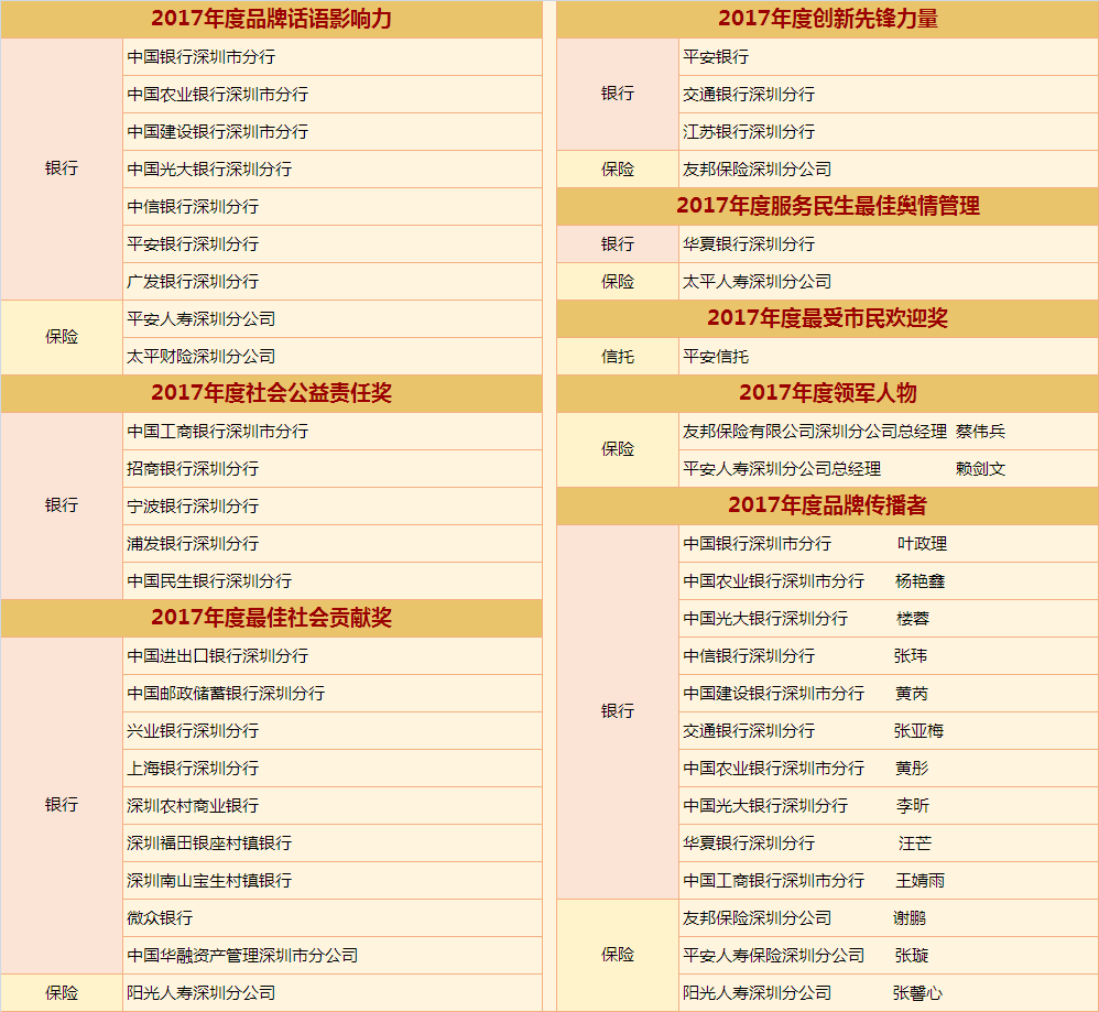 2017年,深圳金融實(shí)現(xiàn)快速發(fā)展。為了讓金融真正回歸服務(wù)實(shí)體經(jīng)濟(jì)的本源,真正脫虛向?qū)崳钲谛侣劸W(wǎng)將聯(lián)手行業(yè)權(quán)威協(xié)會(huì)、第三方機(jī)構(gòu)、媒體,以“新時(shí)代·新服務(wù)·新金融”為主題,以深圳金融機(jī)構(gòu)如何回歸本原、改革創(chuàng)新、服務(wù)實(shí)體經(jīng)濟(jì)為核心,從“品牌話語(yǔ)影響力”、“創(chuàng)新先鋒力量”、“輿情管理 服務(wù)民生”三個(gè)角度出發(fā),邀請(qǐng)眾多金融機(jī)構(gòu)共同發(fā)力,自覺(jué)加入金融回歸服務(wù)實(shí)體經(jīng)濟(jì)本源這一滾滾時(shí)代洪流中來(lái)。作為一個(gè)金融公民,我們也盡一份該盡的社會(huì)責(zé)任,為市民遴選最能代表深圳本地實(shí)力及形象的金融機(jī)構(gòu),同時(shí)頒發(fā)重磅大獎(jiǎng):“金桐獎(jiǎng)——年度品牌話語(yǔ)影響力”、“金桐獎(jiǎng)——年度創(chuàng)新先鋒力量”、“金桐獎(jiǎng)——服務(wù)民生最佳輿情管理”。