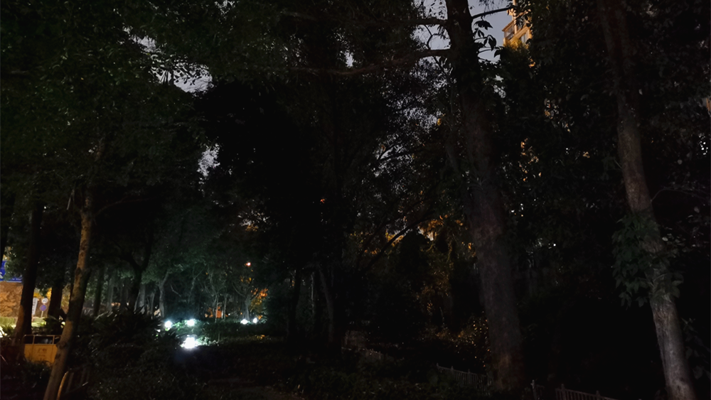 記者從梅林一村附近進入梅林綠道,前行1000米左右,梅林水庫附近確實有一段缺乏照明的路段,綠道兩旁都裝有路燈,但沒有正常運行。