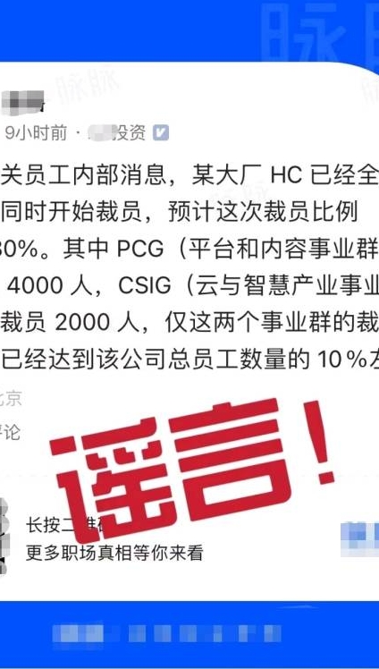 2024-04-21騰訊裁員比例高達(dá)10%到30%?辟謠了!